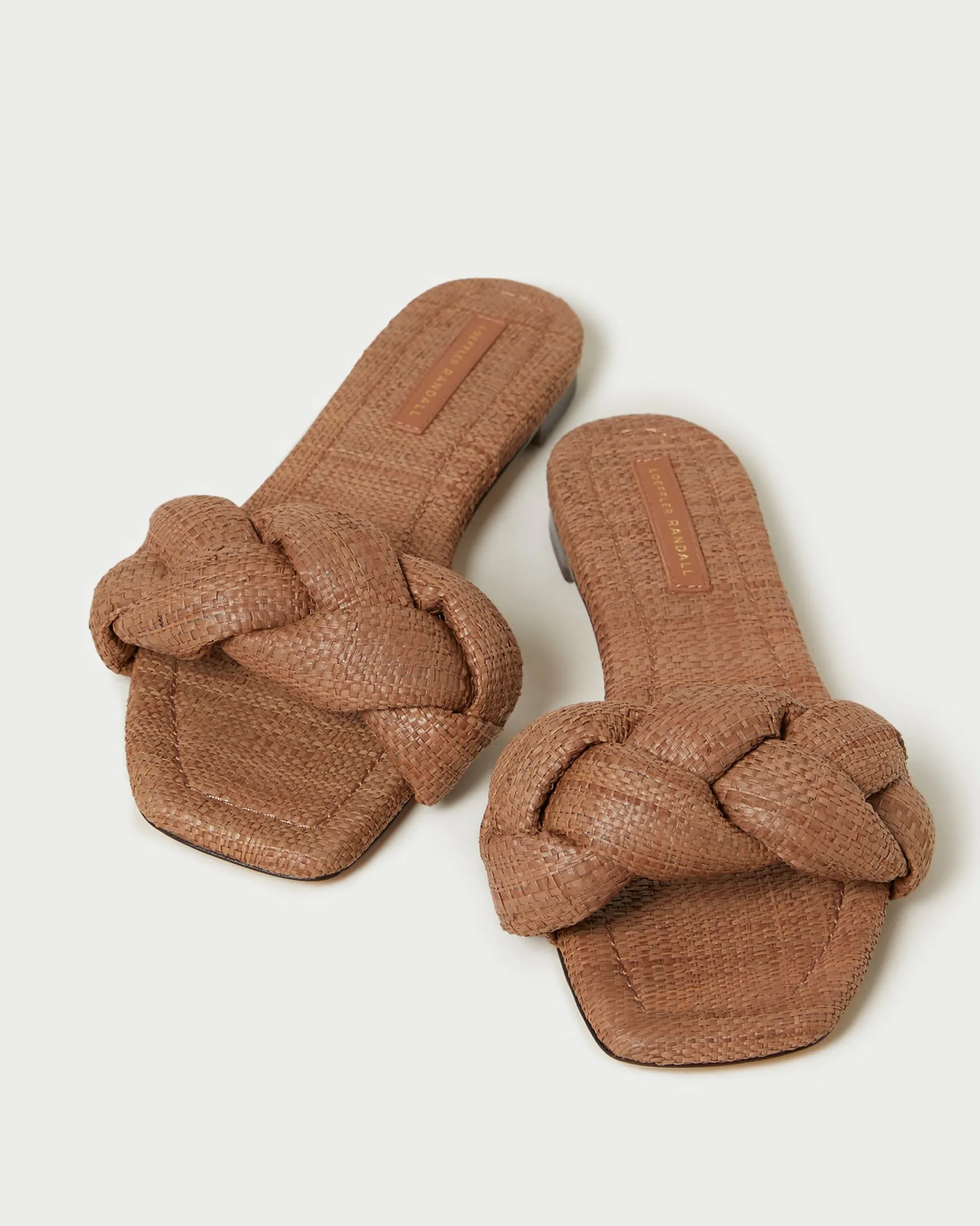 Welcome to Loeffler Randall. Discover our collection of beautiful, handcrafted styles from shoes to RTW to accessories. |Flat sandal in natural raffia with a thick, braided upper. Features a padded footbed and an open, squared toe. Slips on.|We selected this material for its exceptional quality and appearance. As with most natural materials, variations in thickness and color are to be expected. Due to the delicate nature of the fiber, normal wear may occur over time. It is recommended that raffia not be exposed to water in order to maintain its appearance. |Flat sandal in brown raffia with a thick, braided upper. Features a padded footbed and an open, squared toe. Slips on.|We selected this material for its exceptional quality and appearance. As with most natural materials, variations in thickness and color are to be expected. Due to the delicate nature of the fiber, normal wear may occur over time. It is recommended that raffia not be exposed to water in order to maintain its appearance.|Flat sandal in blue tweed denim with a thick, braided upper. Features a padded leather footbed, an open, squared toe, and a slip-on construction.|Cotton can be spot cleaned with a damp cloth and gentle detergent. Allow to air dry.|Flat sandal in natural raffia with a thick, braided upper. Features a padded footbed and an open, squared toe. Slips on.
